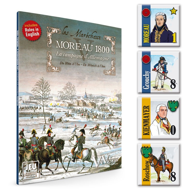 Avec ce nouveau volume, la série Les Maréchaux continue d’évoluer. L’expérience de nombreuses parties ainsi que les demandes des amateurs de la série voient des adaptions mineures intégrées aux règles génériques ainsi que l’ajout de nouvelles règles optionnelles. Parviendrez-vous à faire aussi bien que le général Moreau et concurrencer l’étoile montante Bonaparte ?