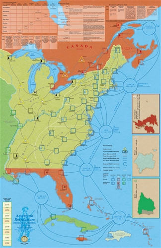 The American Revolution: Decision in North America (AR), is a two-player wargame, designed by Joseph Miranda, in which you command the Americans or the British in the War of American Independence, 1775-82. The American player may also control French and Spanish units if those nations enter the war. Instead of the full campaign game, players may also choose to play the shorter scenario that ends in 1779.
