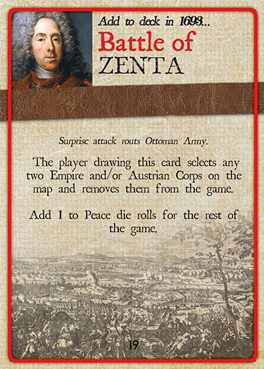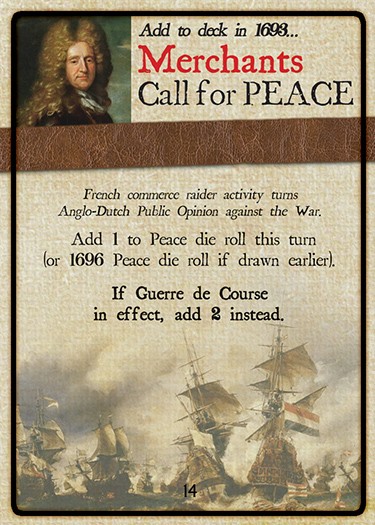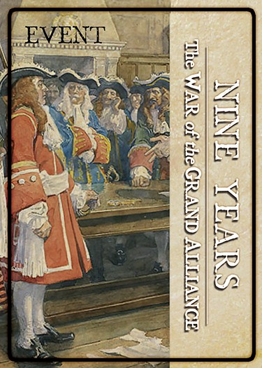 Nine Years: War of the Grand Alliance 1688-1697 offers some additional options such as fighting in the Northern American Colonies, where the conflict was known as King William's War, naval battles in the Atlantic between the Bourbon and Allied Atlantic Fleets and special rules for invading England and -newly present- Ireland. Victory points are still gained or lost by the Alliance player, but with new features. Peace negotiations are influenced by the board position in Spain, Germany, Ireland and England.
