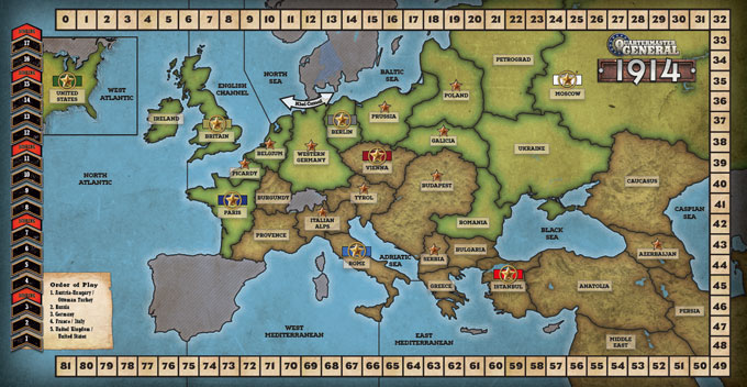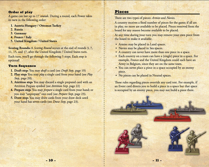 In Quartermaster General: 1914, each card has two different uses: one when played, and another when prepared. On your turn, you have the opportunity to both play and prepare a card. You can also spend cards to draft more troops, or use cards to attrition your opponents. However, your deck represents your overall resources, so moving too quickly through your deck early might result in your unsupported armies being swept away in the final rounds of the game. This is worth it if you can capture Berlin or Paris in 1915, but if your gambit fails, you may have a tough road ahead.