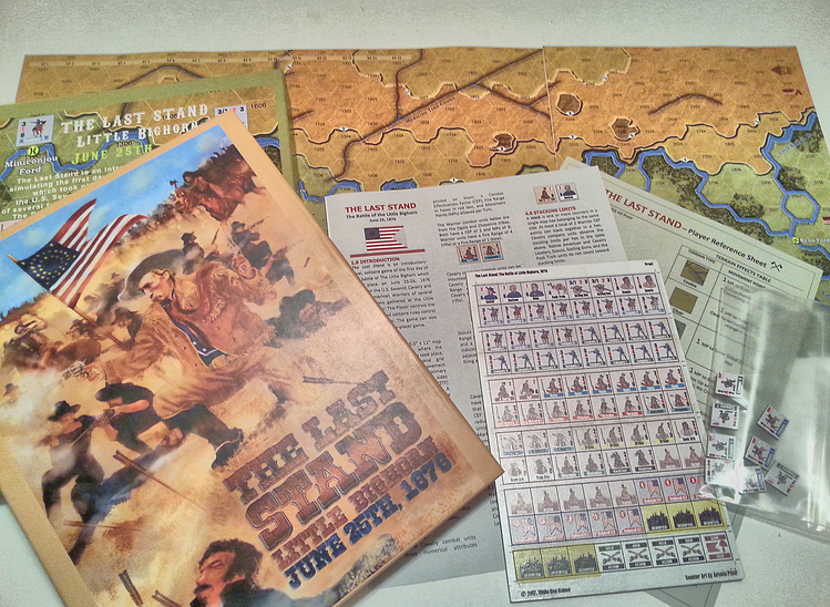 The Last Stand is an introductory-level, solitaire game of the first day of the battle of The Little Bighorn which took place on June 25-26, 1876 between the U.S. Seventh Cavalry and Native American Warriors of several tribal nations gathered at the Little Bighorn River. The Player controls the Cavalry side and solitaire rules control the Warrior side. The game can also be played as a two-player game.