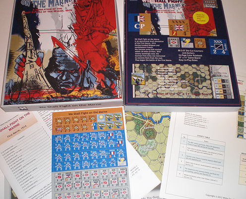 We Shall Fight on the Marne is an operational level simulation of the First Marne, 1914, for two players or solitaire. Game features include bombardment, air observation, pontoon bridges, weather, corps breakdown units, cavalry scouting/reaction, breakthough movement, and forced marches. Solitaire rules are included