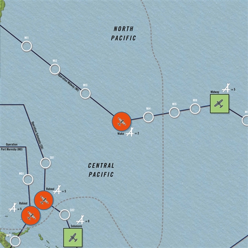 Midway Solitaire is a wargame of the Campaign in the Pacific Theater of Operations (PTO) in April-June 1942. This period saw the Japanese take the offensive in two major campaigns which resulted in the battles of the Coral Sea and Midway, both of which were decided by aircraft carrier actions. In the game, the player takes command of United States Navy and Allied (USN) forces. The game system takes command of Imperial Japanese Navy (IJN) forces. You, as the USN commander, must defeat multiple IJN naval offensives while your foe has superior numbers. What is at stake is the entire course of the war in the Pacific Theater.