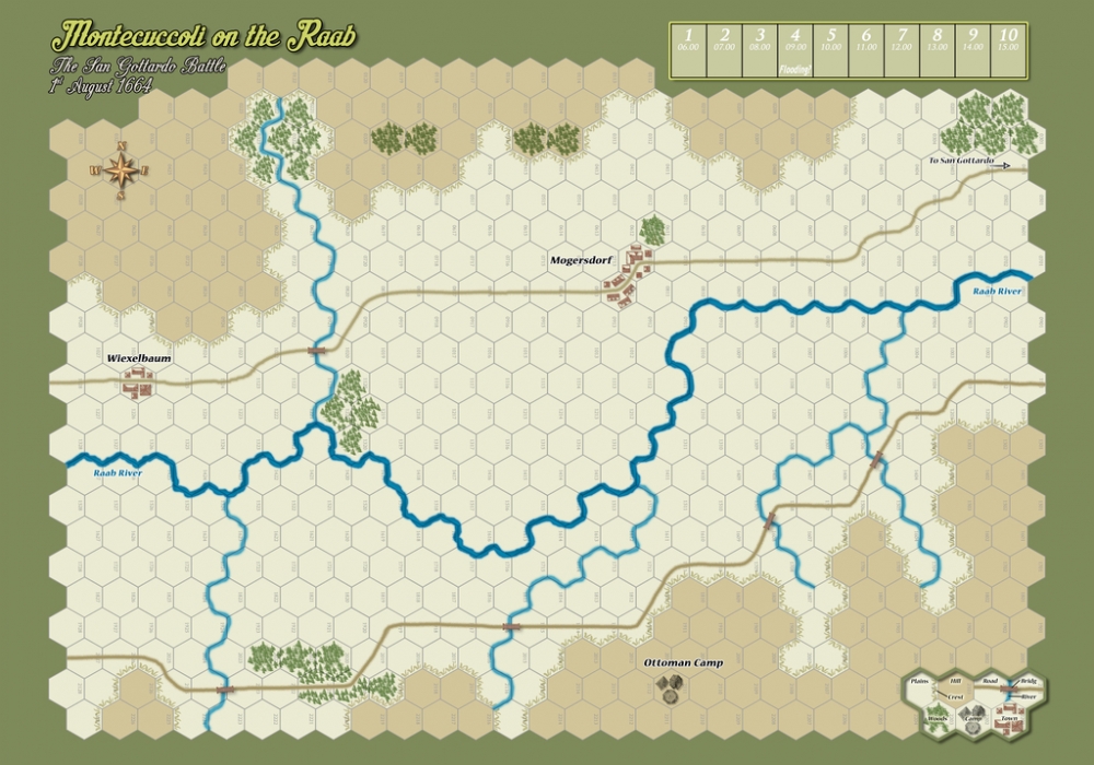 Raab is the first game of the newborn Montecuccoli Battle Series, designed by Paolo Carraro. The Battle of Saint Gotthard was fought on 1st August 1664. Montecuccoli led the League of the Rhine to a great victory over the Ottoman Empire, despite the lesser number of soldiers.