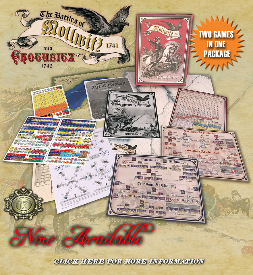 The latest installment of the BAR series, "Mollwitz & Chotusitz: Battles of the First Silesian War" contains the first two battles of Frederick the Great's career as he began to forge his legacy as the greatest general of his generation. But be aware, this is not the Prussian Army of the Seven Year's War!