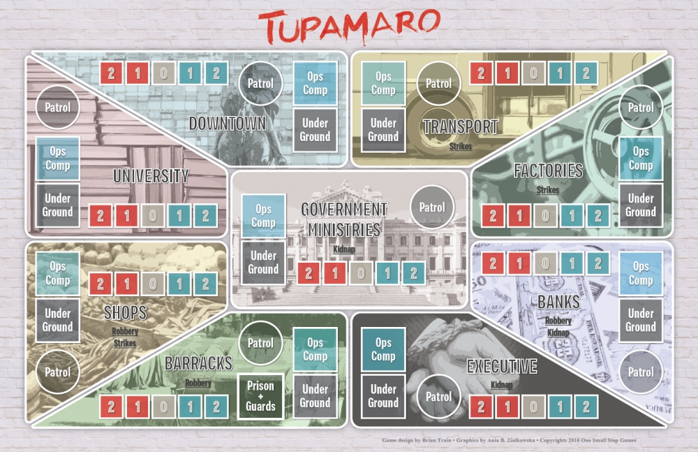 • The economy. The Tupamaros also organized frequent riots or strikes to interfere with the operation of the economy. This diverted police resources (in the game, the government must react to a riot/strike or suffer a considerable political penalty) and affects the ability of the government to support the counterinsurgency fight through undisturbed taxation.