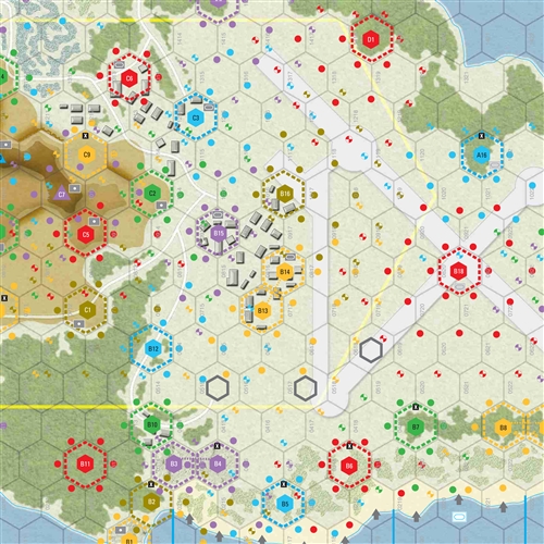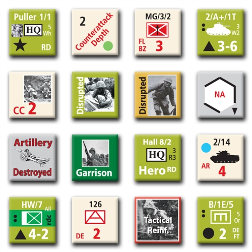 Players familiar with Omaha Beach will recognize the hazardous amphibious landings, overlapping enemy fields of fire, uncanny enemy tactics, and the emergence of heroes and leaders as the battle unfolds. In Peleliu new features cover coordinated Japanese counterattacks, close combat, fortified positions in coral and mountain terrain, and the hellish canyons and peaks of Umurbrogol Mountain, ever after referred to by the Marines as “Bloody Nose Ridge.”