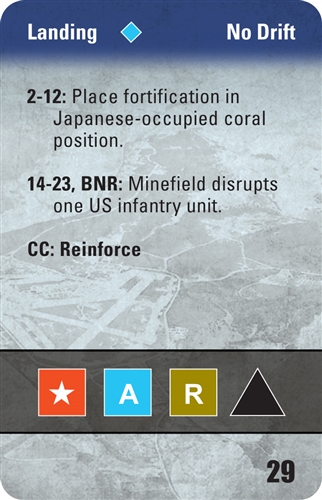 In D-Day at Peleliu, designer John Butterfield advances the solitaire system of his award-winning D-Day at Omaha Beach to the next level. You control the US forces against a Japanese defense determined to hold the island at all costs. An innovative no-dice combat system highlights unknown enemy deployments and the importance of using the right weapons and tactics. Event cards keep the action flowing and the rules simple while introducing historical detail.