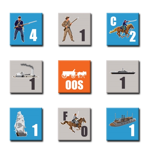 During each quarterly turns, players recruit additional forces, then conduct a pair of impulses. During each impulse, each player moves forces and fight battles. Movement rates are high, but enemy forces can react by retreating, blocking further movement, or counterattacking. Battles are decided by a combination of good leaders and relative strength. The Confederacy starts with a decided advantage in leadership. Union leaders appear only after fighting battles: the Union player may have to lose a few battles to get the leaders needed to win the war.