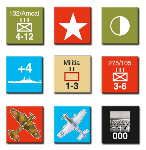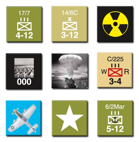 As the Japanese were committed to a strict operational plan organized around the theme of an aggressive beach defense, the basic version of Olympic & Coronet is a solitaire game in which a single player controls both opposing forces. During solitaire play, you should alternately direct each opposing force so as to maximize the ability of each to fulfill its particular victory conditions. You will have complete control over all American (US) units, while the Japanese units will be restricted by their doctrine rules. To as great a degree as possible, those prescribe how and when Japanese units move and fight. The Japanese doctrine rules fill the role of the absent Japanese player.