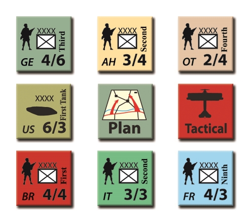 Mobilization Points are used to build new units, absorb combat losses, and purchase campaign markers allowing additional activity in chosen sectors. They are always in short supply, increasingly so as economies shrink over the course of the war. Neutrals, wooed by diplomacy, may bring fresh strength to bear.