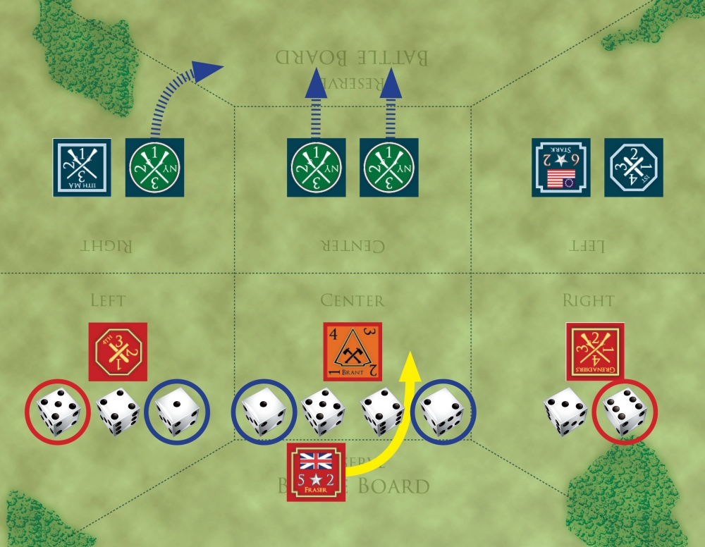 Each turn both the American and British player will receive activation points with which to activate either groups of blocks moved by a leader, or individual blocks. When blocks of both sides end a move in a location together then a battle occurs.