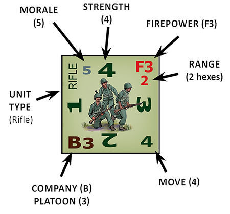 You command a German or American infantry battalion, composed of three infantry companies and a heavy weapons company. Expansion sets will include British, Soviet, Italian, and Japanese battalions.