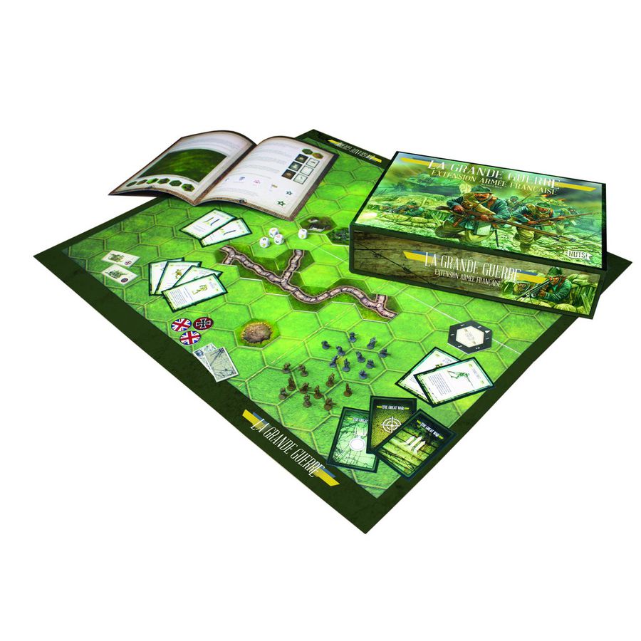 The French Army expansion presents 12 scenarios from this famous battle. The box includes a rule and scenario book, 2 special personnel and terrain summary sheets, 3 punchboards of double-sided terrain tiles, tokens and markers, and a complete French force of plastic poilus.