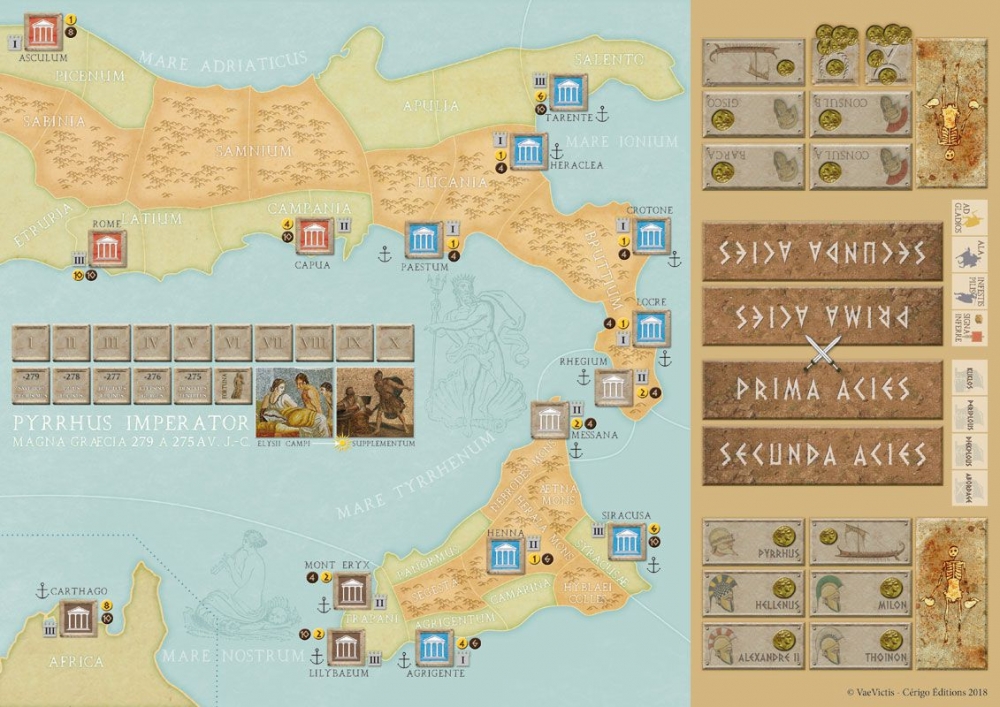 En -280, Pyrrhus, roi d’Epire et neveu d’Alexandre le Grand débarque avec ses phalanges et ses éléphants pour défendre les cités grecques d’Italie du Sud et de Sicile. Rome est alors en guerre contre les Samnites et les Etrusques. En à peine trois ans, Pyrrhus se retrouve à trente kilomètres de Rome et devient roi de Sicile. Il a repoussé les Romains et les Carthaginois au prix de pertes terribles. Qui pourra le vaincre ? Les quinquérèmes carthaginoises en l’attaquant dans le détroit de Messine ou les légionnaires de Rome terrifiés par les éléphants ? ou peut-être les Italiotes et les Grecs qui changent d’alliance tous les jours. Seule la déesse Fortuna le sait.