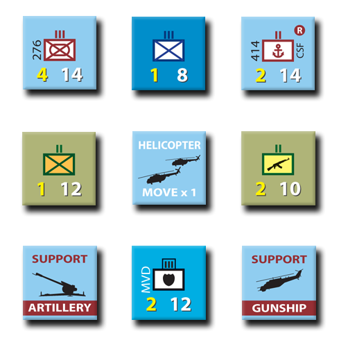 Chechen War is an operational-strategic level two-player simulation of the 1st Chechnya War (1994-1996) wherein the Russian Federation under Boris Yeltsin attempted to directly and forcibly put an end to the Chechen independence movement. The Russian player must deal with low morale at the front and at home to win the war to keep Chechnya within the Russian Federation. The Chechen player is outgunned and outnumbered, but can wage an effective guerilla campaign to bog down the entire Russian effort and thereby achieve independence. There is a total of nine game turns covering two years of conflict, from December 1994 to December 1996. The game map encompasses Chechnya and surrounding territories (Georgia, Ingushetia, Dagestan). Included on the counter sheet are Bonus counters for Modern War #1 (Red Dragon/Green Crescent), Modern War #18 (Green Beret), Modern War #21 (Kandahar) and errata counters for Modern War #17 (Dien Bien Phu).