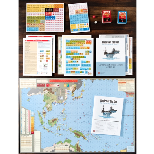 Empire of the Sun (EotS) is Mark Herman's third card driven design since he introduced the system to the hobby in We The People. EotS is a strategic level look at the entire War in the Pacific from the attack on Pearl Harbor until the surrender of Japan. EotS is the first card driven game (CDG) to move the system closer to a classic hexagon wargame, while retaining all of the tension and uncertainty people have come to expect from a CDG. Players are cast in the role of MacArthur, Yamamoto, Nimitz, and Mountbatten as you direct your forces across the breadth of the globe from India to Hawaii and from Alaska to Australia. This is represented on a single map based on a 1942 equal area projection of the entire theater of conflict.