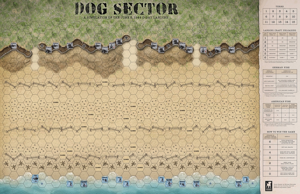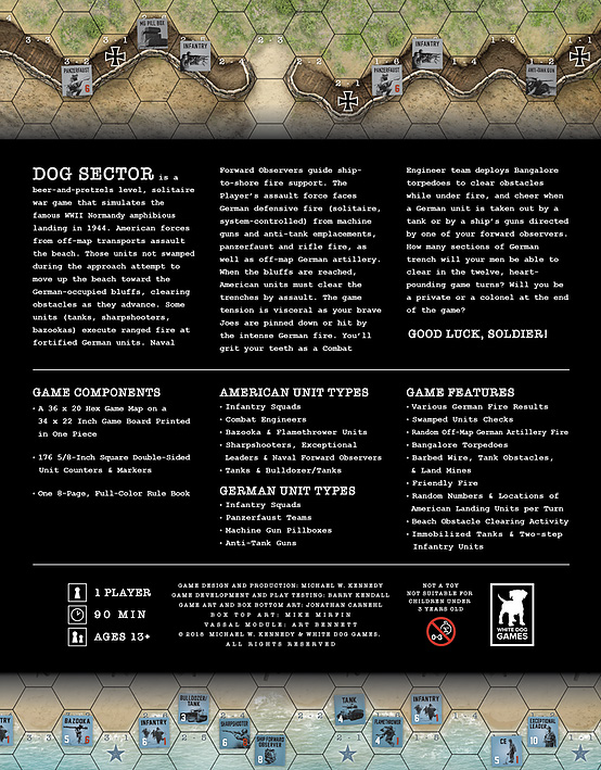 Dog Sector is a beer-and-pretzels level, solitaire war game that simulates the famous WW II Normandy amphibious landing in 1944.