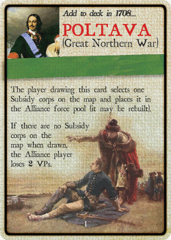 Victory points are gained or lost by the Alliance player and game victory comes either through automatic victory or based on final VPs after the 1713 turn.
