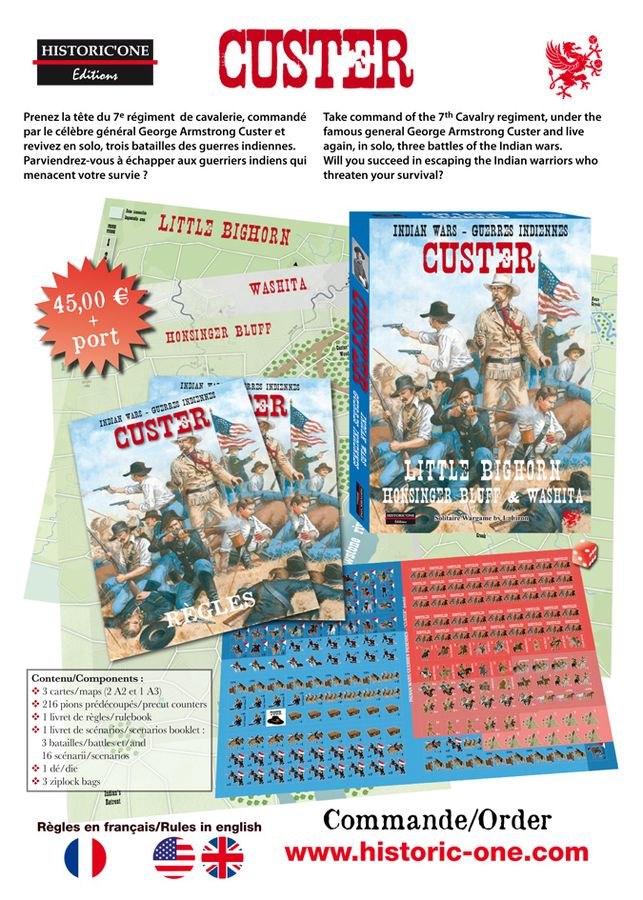 Prenez la tête du 7e régiment de cavalerie, commandé par le célèbre général George Amstrong Custer et revivez en solo 3 batailles des guerres indienne s: Washita, Honsinger Bluff et Little Big Horn.