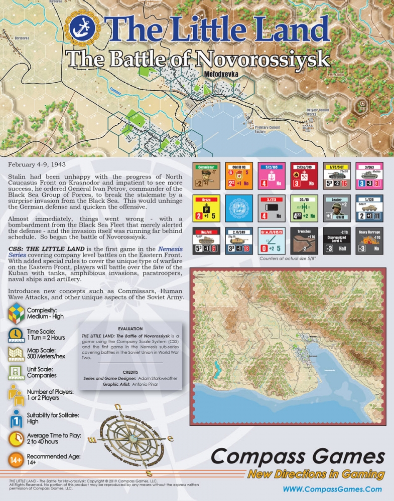 CSS: Novorossiysk is the first game in the Nemesis series covering company level battles on the Eastern Front. With added special rules to cover the unique type of warfare on the Eastern Front, players will battle over the fate of the Kuban with tanks, amphibious invasions, paratroopers, naval ships and artillery.