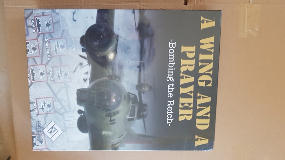 A WING AND A PRAYER is a design by Erik von Rossing where you, the player, assume the role of a Commander of a Squadron of B-17 “Flying Fortresses” stationed in England during World War II. In mid-1942, the United States Army Air Forces (USAAF) arrived in Britain equipped with B-17 Heavy Bombers. The B-17 was nicknamed the “Flying Fortress” because of their heavy defensive armament of ten to twelve .50 Caliber machine guns and armor plating in vital locations. Because of their heavier armament and armor, the B-17s tended to carry smaller bomb loads than British bombers. With all of this, USAAF and British Commanders adopted the strategy of taking on the Luftwaffe head on, in larger and larger air raids by mutually defending bombers, flying over Germany, Austria, and France at high altitudes during the daytime. They claimed that by using the B-17 and the highly classified Norden bombsight, the USAAF should be able to carry out “precision bombing” on locations vital to the German war machine, such as factories, naval bases, shipyards, railroad yards, railroad junctions, power plants, steel mills and airfields.