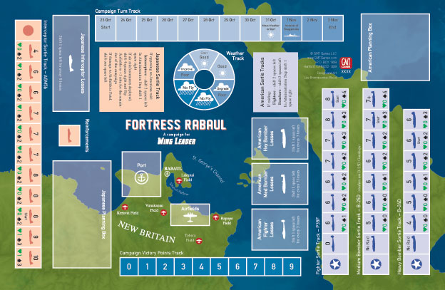 In addition to new aircraft and scenarios, Wing Leader: Eagles features a new campaign game, which recreates the 5th Air Force campaign against Rabaul in late 1943. The campaign comes with its own 11 x 17” campaign map, and will confront the American and Japanese players with tough decisions on targeting, force planning and raid execution in the lead-up to the invasion of Bougainville.