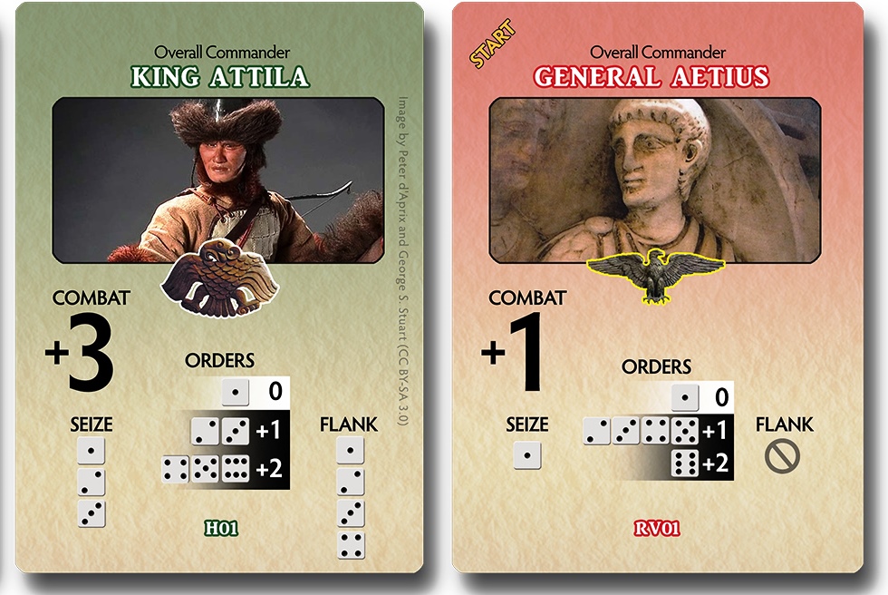 Now, you can apply those multi-faceted armies against each other in a way that really shows off their diversity. The Battle of Châlons game uses full-sized cards for each unit (rather like our Battle of Arbela game by the same designer). Each card has all the information you need for movement, activation, combat, and morale. Players set up their best available deployments to execute their strategies and win the game (if the gods of fortune smile!). Your leaders allow activations and assist in combat. Some troops may make choices other than what the commanders might have wished (and that can work out well or otherwise). It’s all part of presenting this chaotic game in a timely and playable fashion.