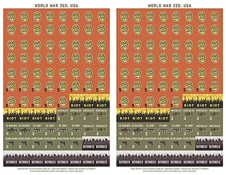WORLD WAR ZED: USA pits you as the leader of the United States against an outbreak of Zombies or similar – called “Zeds” in the game. You must manage population centers, farmlands, refugees and the scientific and military response to the outbreak. Use the Army, Marines, and National Guard to fight the spreading Zeds. Weapons at hand against the prolific zombies include air strikes, nuclear detonations, and biochemical attacks. World War Zed: USA is a different kind of war game which will appeal to many regular war gamers as a light break from more serious and historical slogs and has the cross-generation appeal to serve as a game to bring family members of all ages together at the table for a fun, if slightly scary, evening. Designed by David Kershaw (Don't Tread on Me!, Albuera 1811, Vietnam Solitaire) with wonderful comic-book style art by Jonathan Carnehl.