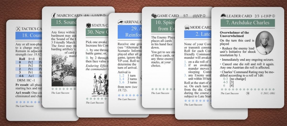 These four games explore the major battles of 1809, where the French Army encountered a modernized Austrian Army under the capable Archduke Charles. Each game shows the approach to the battlefield on the day before battle. The Aspern-Essling and Wagram battlefields are on one map. Set at the scale of Napoleon's Last Battles—525 yards per hex and one hour turns—the game retains the Command System of Commanders and Corps Officers.