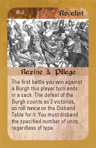The game uses a modification of the Hand of Destiny series rules. Each player has a unique set of campaign cards generating historical events such as defection, plague, and the terrifying Highland charge, all of which affect recruitment, movement, and combat. Combat is resolved using a quasi-tactical procedure in which units take turns attacking one another.