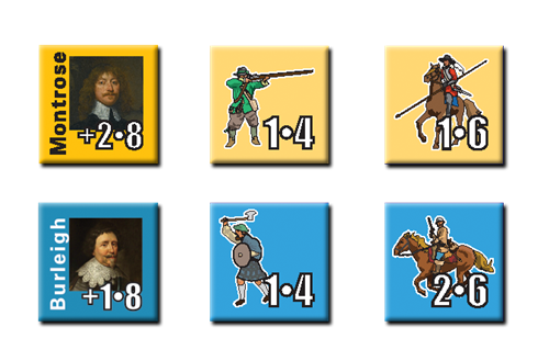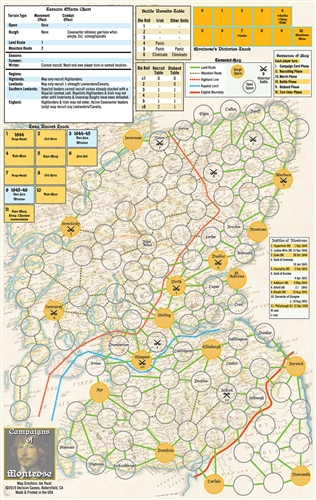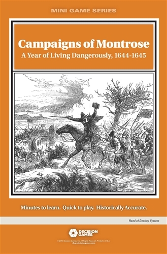 Campaigns of Montrose: A Year of Living Dangerously, 1644-1645. This is a two-player game. It depicts James Graham, the Marquis of Montrose, and his legendary string of victories over the Scottish Covenanter government during the First English Civil War (1642-1646), that would later go down in a crushing defeat. The Royalist player must recruit a Highland army and either replicate Montrose’s victories or march into England. The Covenanter player must overcome factional infighting to defeat Montrose. Both sides must manage the tendency of conscripted units to disband after every defeat or victory.