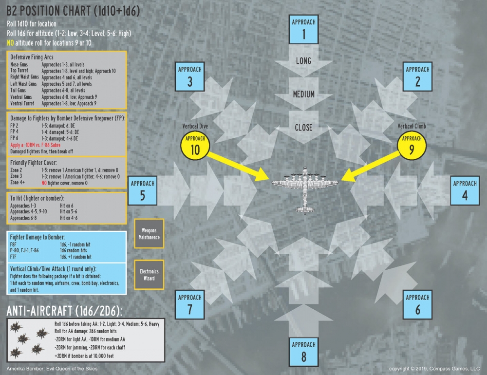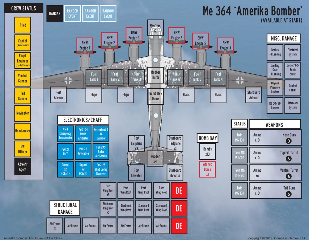 This game is highly accessible to those familiar with the B17: Queen of the Skies system. The game system lends itself very well to capturing the tense feelings of being on a bombing mission, and gives a frightening look on “what might have been” had the Allies fared poorly in the war. While Amerika Bomber: Evil Queen of the Skies is designed as a solitaire gaming experience, additional options for play are provided for both multi-player cooperative and competitive gaming sessions.