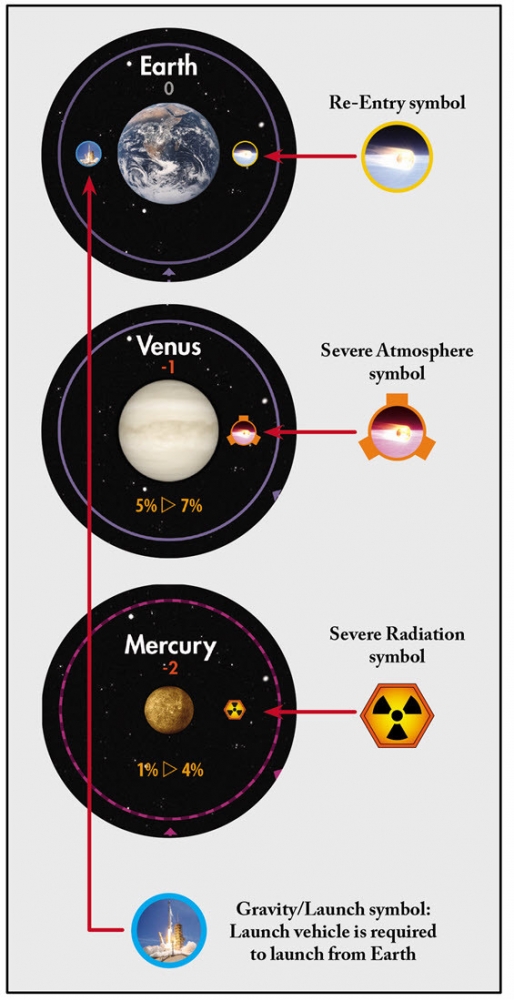 4 Player Aids containing the various charts and tables needed to play and the Solar System and Space diagram