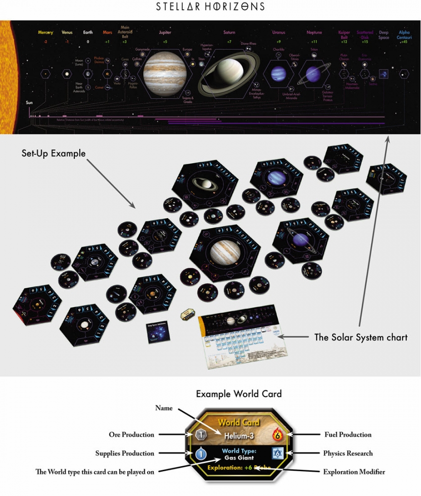 Stellar Horizons is a “near future” game for 1-7 players where you will lead one of Five Earth factions to explore and develop our solar system.