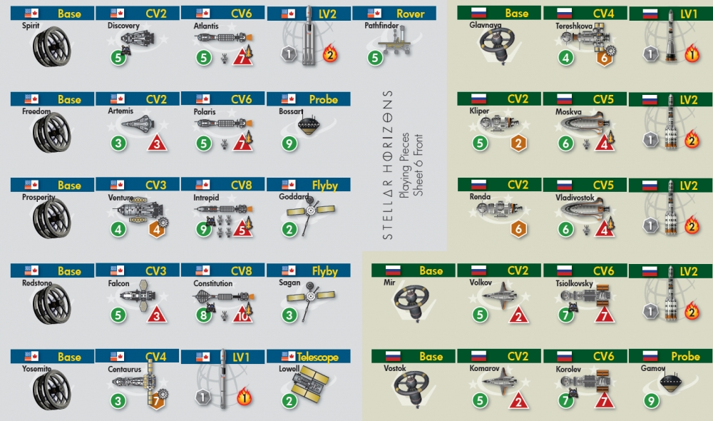 • 130 Installation markers – 21 each of Supply Stations, Spaceports, Mining Stations, Refineries, and Research Stations, and 25 Defense Works