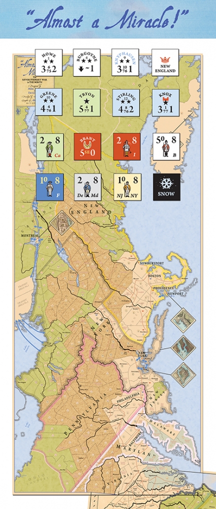 "Almost a Miracle!" uses our successful "Tarleton's Quarter!" as a game engine starting point to bring the Northern "half" of the American Revolution into play.