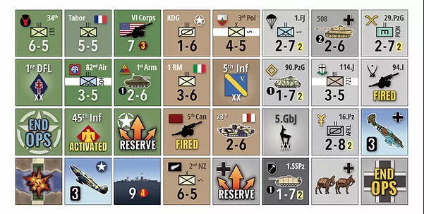 There is one for each player; their purpose is to keep track of points and of all the different formations that are activated. All armies are represented. There are several boxes available for the HQ counters of each formation in the game. .