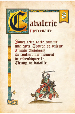 Comment constituerez vous vos formations ? Utiliserez-vous les chevaliers de la Garde du Roi pour vaincre votre ennemi ? Peut-être engagerez-vous les Rois d’Angleterre et de France en personne pour capturer un Champ de bataille crucial pour la victoire ? Ou bien utiliserez-vous des tactiques moins glorieuses en révélant un traître dans les rangs ennemis, ou en encourageant les désertions chez votre adversaire ? Vous aurez une multitude de choix, chaque carte vous offrant des options pour réagir aux actions adverses tout en déroulant votre propre stratégie.