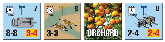 In La Campagne de Tunisie, designer Philippe Léonard (1940: The Fall of France) tells this story in a series of 12 Panzer Grenadier scenarios, as the French fight the Americans, the Germans, the British and the Italians (but not all at the same time). Initially resisting the American and British invaders, the French see things differently after the Germans toss aside the German-French Armistice of 1940 and occupy all of France. The French - including troops from Morocco, Algeria and Tunisia – then fight against the Germans and Italians, providing a major component of the British First Army in northern Tunisia.