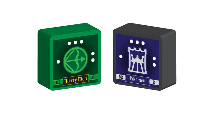 One side marshals the forces of the Sheriff of Nottingham led by the Black Knight. He leads Knights, Normans, Pikemen and Archers in Pursuit of Robin Hood and into Battle . The other side is Robin Hood and his band of Merry Men who raid the Sheriff's castles and Rob his gold wagons. Each side has strengths and weakness. These forces contest each other in a power struggle to gain the most gold to support their causes.