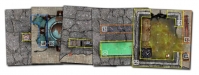The game board is built from modular tiles which are themed to represent different environments. The default game board is a destroyed urban setting. Players build the game board with nine modular tiles, each of which are divided into a 7x7 grid. Characters use the grids for movement.