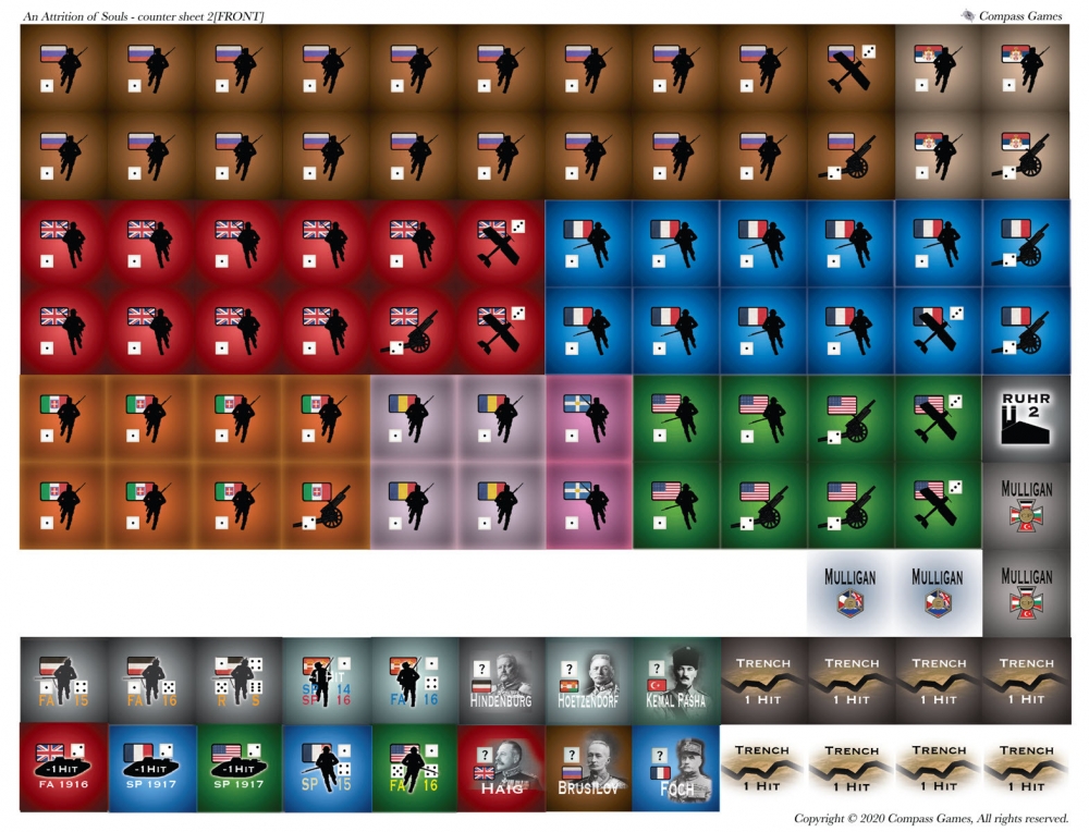 An Attrition of Souls also offers great variability regarding the length of the war. Some games will end with decisive victories in 1915 and other will draw out into brutal stalemates that last until the end of 1918. No two games play alike. Added to this is a plethora of optional rules that bring additional historical depth to the game as well as balancing the game for players of different skill levels.