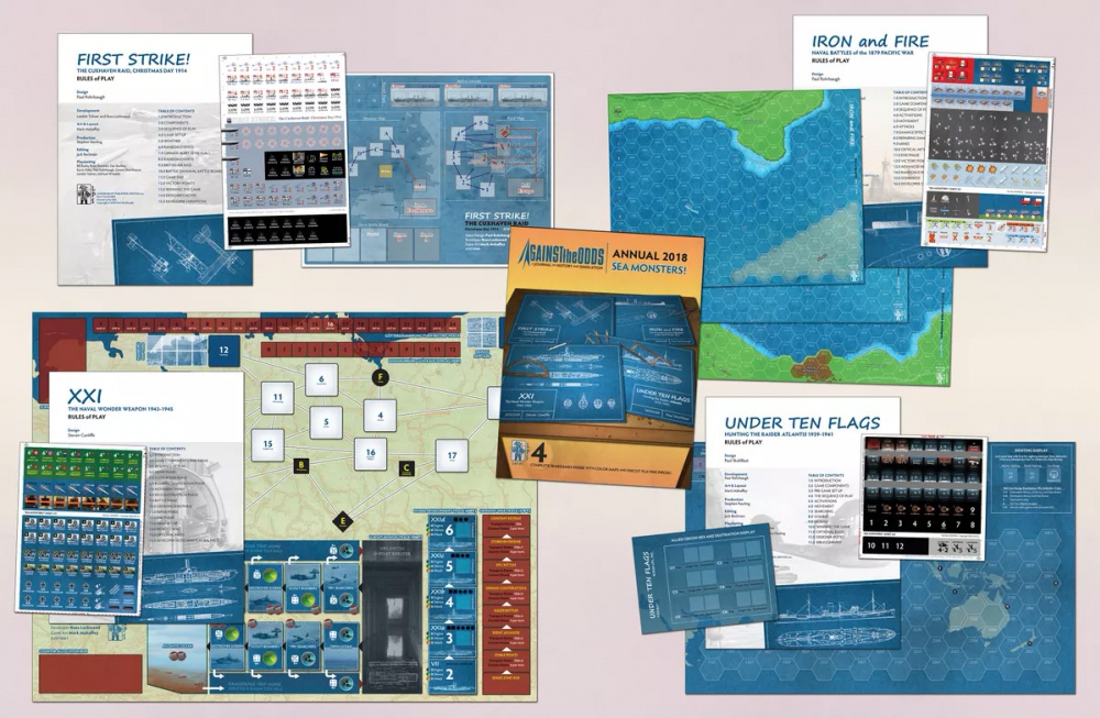Steven Cunliffe with XXI, a solitaire game set in 1943 that challenges the player (acting as both Speer and Dönitz) to organize and complete construction of a fleet (or at least “enough”) of the new German Type XXI submarine. However this new sub is far larger, more complex and more expensive, and requires much more manpower and scarce resources than previous submarines. Just a few of these new Type XXIs will do nothing. Only a radical transformation in shipbuilding techniques to mass produce the design - and not giving in to setbacks - will enable this “wonder weapon” to arrive in time....