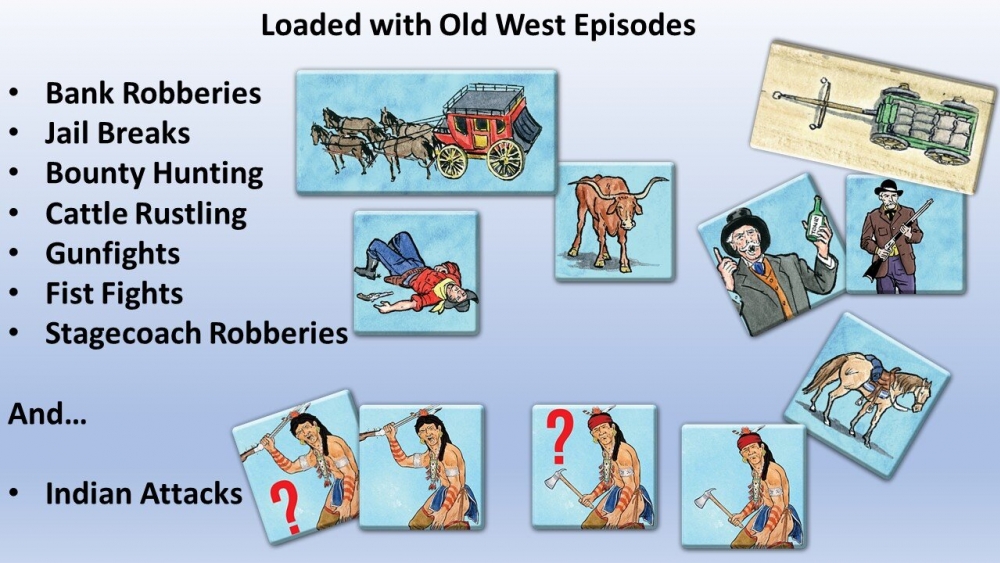 COWBOYS II has larger reconfigured 11 x 11 mounted boards, new game boards, SOLITAIRE rules, a wagonload of new episodes, new player mats, new characters, a role playing elements (play one character through any number of scenarios).