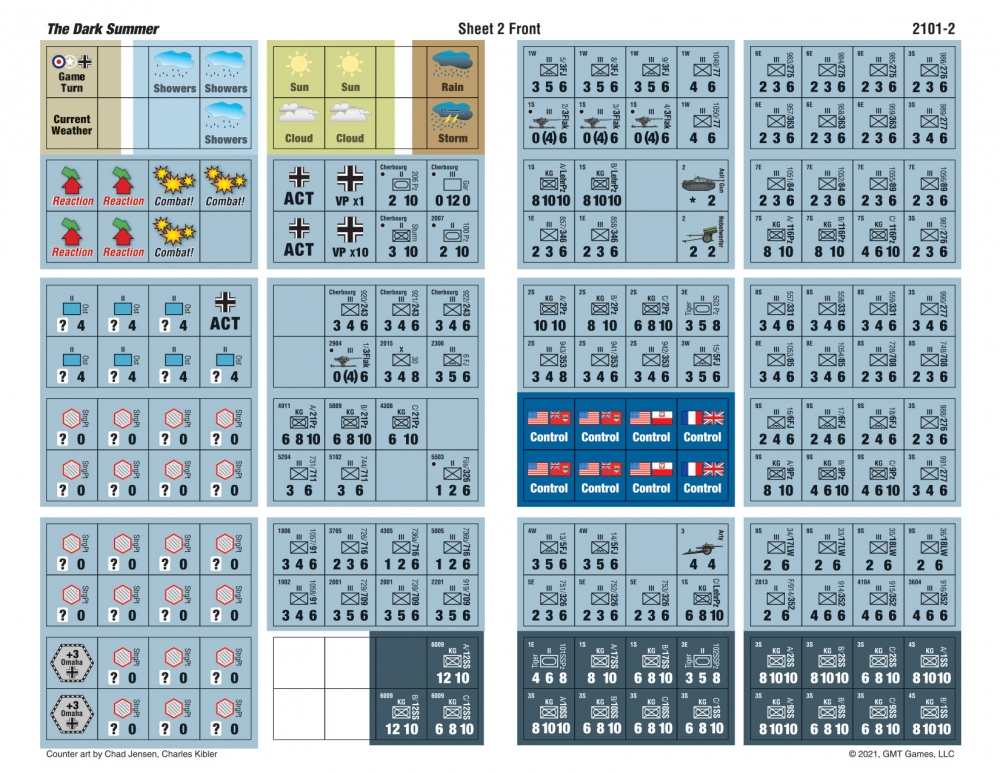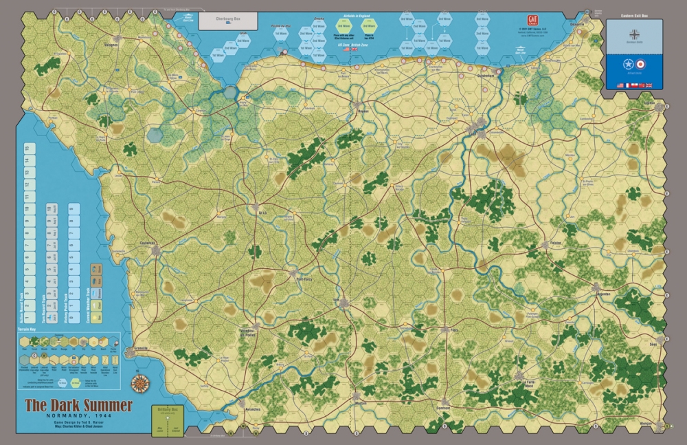 The Dark Summer: Normandy 1944 is the latest in Ted S. Raicer's WWII operational series that began with The Dark Valley: The East Front Campaign 1941-45. The game uses a chit-pull activation system that determines both the order and type of each sides' actions during the game's ten action-packed turns, covering June 6 to August 21, 1944.