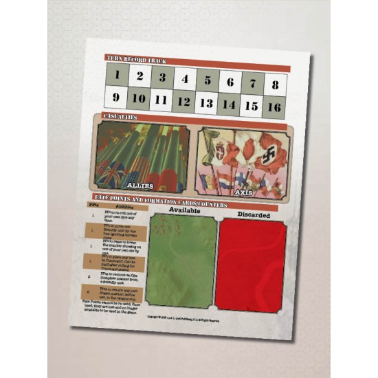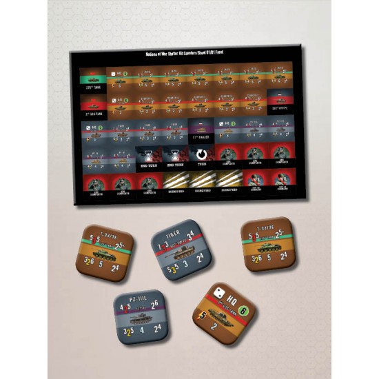 Included in our NaW Starter Kit is a full color printed 11 x 17 map, one counter sheet with 44 rounded counters 2 mm thick, an 11 x 17 player aid card, a set of playing cards, and links to download your preferred game manual. The only thing you will need a set if 1d6 dice.