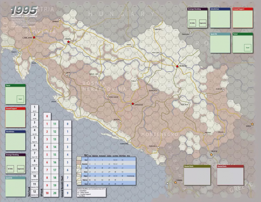 1995 est la troisième itération de notre série de combats procéduraux et examine une guerre froide devenue chaude pendant les guerres de succession yougoslaves. La puissance combinée d'une JNA dominée par les Serbes et d'une Russie affaiblie mais toujours puissante s'attaque aux plus petites républiques dans le but d'établir une Yougoslavie dominée par les Serbes, donnant ainsi à la Russie un pied dans l'arrière-cour de l'OTAN.