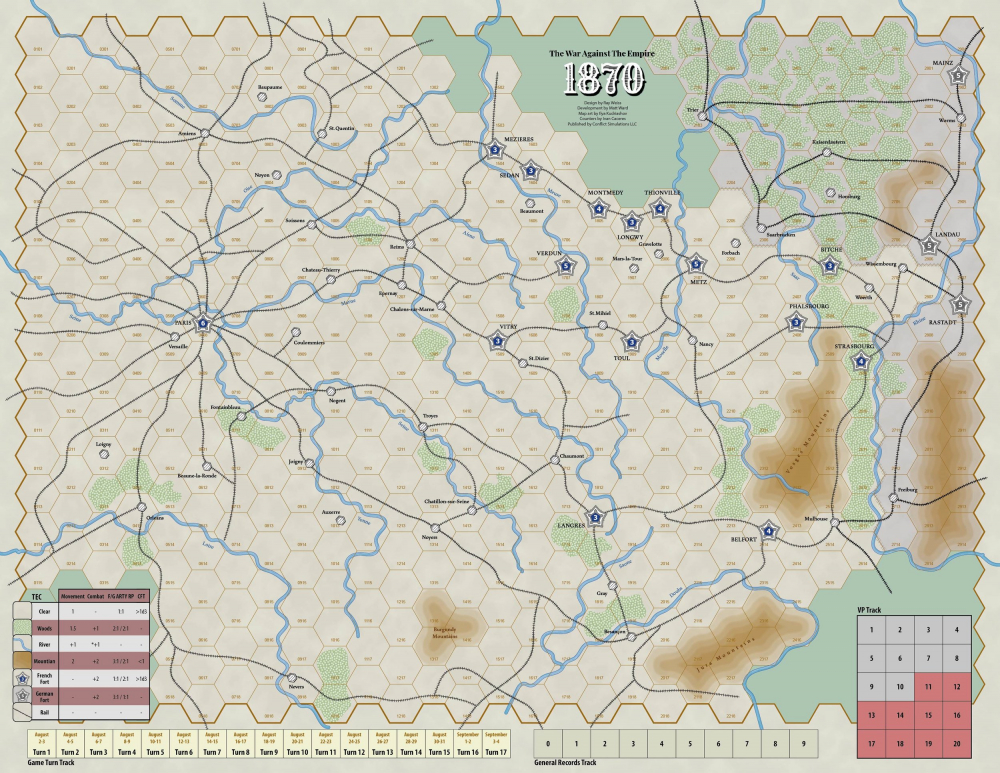 1870 est le premier d'une nouvelle sous-série de jeux de la série 2140, appelée Long Century Operational Series, qui couvre les conflits du XIXe siècle à une échelle opérationnelle unique. 1870 couvre le premier mois/la première phase de la guerre franco-allemande, au cours de laquelle les armées combinées d'Allemagne ont submergé les forces martiales de Napoléon III dans une campagne éclair d'opportunités et de manœuvres qui n'a pris qu'un mois pour renverser le Second Empire. 1870 est fortement inspiré de la Wilderness Campaign de SPI, de l'US Civil War de Mark Simonitch et de la série Great Campaigns of the American Civil War.