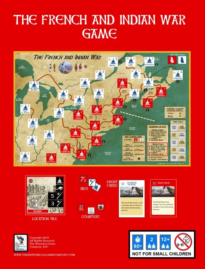Il s'agit d'un jeu stratégique de conquête par roulement de dés couvrant la guerre française et indienne en Amérique du Nord avec un joueur britannique et un joueur français. Deux joueurs peuvent jouer dans un même camp si désiré. Les joueurs tentent de conquérir des lieux sur la carte du jeu. Chaque emplacement a une tuile correspondante qui contient des informations sur les dés qui doivent être lancés pour conquérir la tuile, un peu comme dans Age of Wars. Des cartes d'événement sont jouées pour chaque joueur à chaque tour, qui apportent des avantages et des inconvénients au joueur. Il existe également une phase stratégique au cours de laquelle le joueur peut rassembler des garnisons pour les lieux clés, ce qui les rend plus difficiles à prendre. Bien qu'il existe des conditions de victoire automatique pour la capture de lieux spécifiques, la victoire est généralement obtenue en conquérant un certain nombre de lieux.